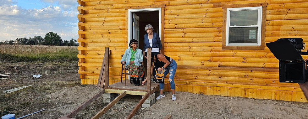 "Several years ago I got to know Barbara High Pine and have been lucky to be her friend. During a storm a few years ago, the roof of her house caved in and she has lived in only part of her house ever since. The structure was in disrepair and could not be restored to livable conditions. Recently, I talked with the construction crew from Ohio who has been instrumental in volunteering to help us build the expansion to the Buffalo House. After they saw Barbara's house, we worked together and found a way to pre-build a new house and bring it to the Reservation in parts. Two days ago, the house was completed and Barbara moved in. Since that time she has been sleeping in the lounge/lift chair that supporters from Ohio so generously donated to her. Barbara is an artist, writer, medicine woman, and spiritual person. We still have a way to go to help her have the things she needs but we are nearly there." - One Spirit Director, Jeri Baker