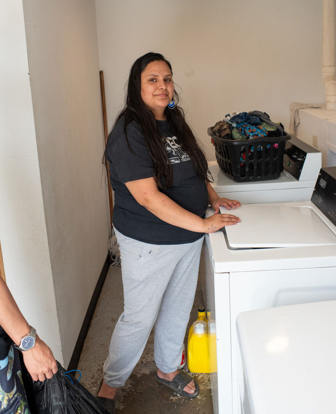 The laundromat provides free washing machines and dryers for the public to use as much as they need. People drive from other districts, some up to 100 miles roundtrip, just to wash their clothes. We are now preparing to open laundry facilities in other parts of the Reservation.